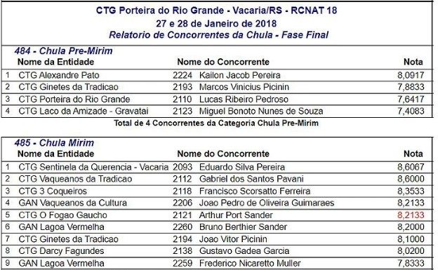 A lista completa com a ordem de apresentação para o Rodeio da Vacaria 2018 já saiu!