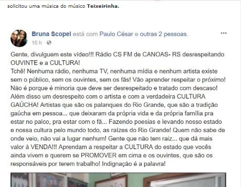 O que ocorreu foi que um ouvinte fez contato com a Rádio CS FM da cidade de Canoas, e solicitou uma música do músico Teixeirinha.