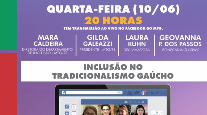 “Inclusão no Tradicionalismo” é o tema de live que o Movimento Tradicionalista Gaúcho do Rio Grande do Sul realiza, nesta quarta-feira, 10 de junho, em sua página do Facebook.