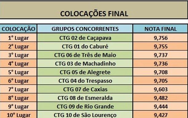 RESULTADO DO 17º ACAMPAMENTO DA CANÇÃO NATIVA DE CAMPO BOM